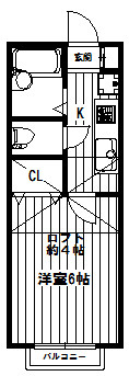 間取り 1K 間取り詳細 K3帖 / 洋室6帖 / ロフト4帖 専有面積 20㎡